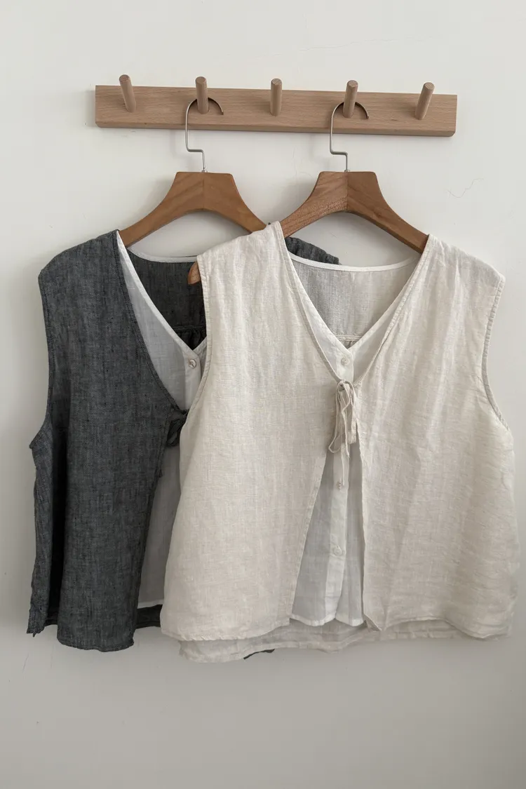 前綁帶假兩件式背心