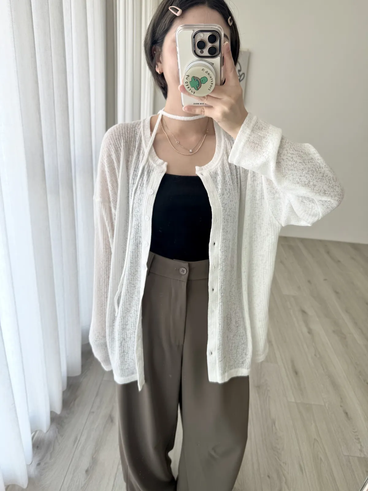 針織排釦微透上衣