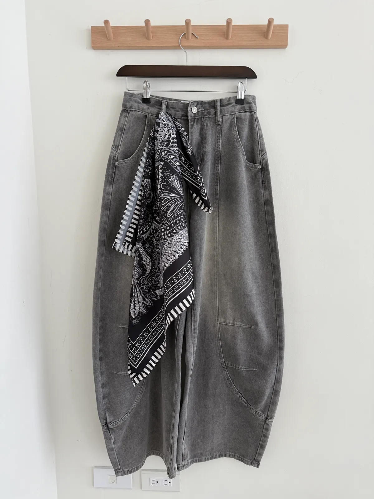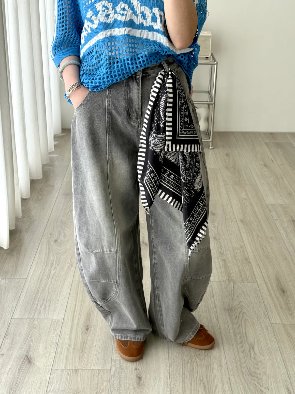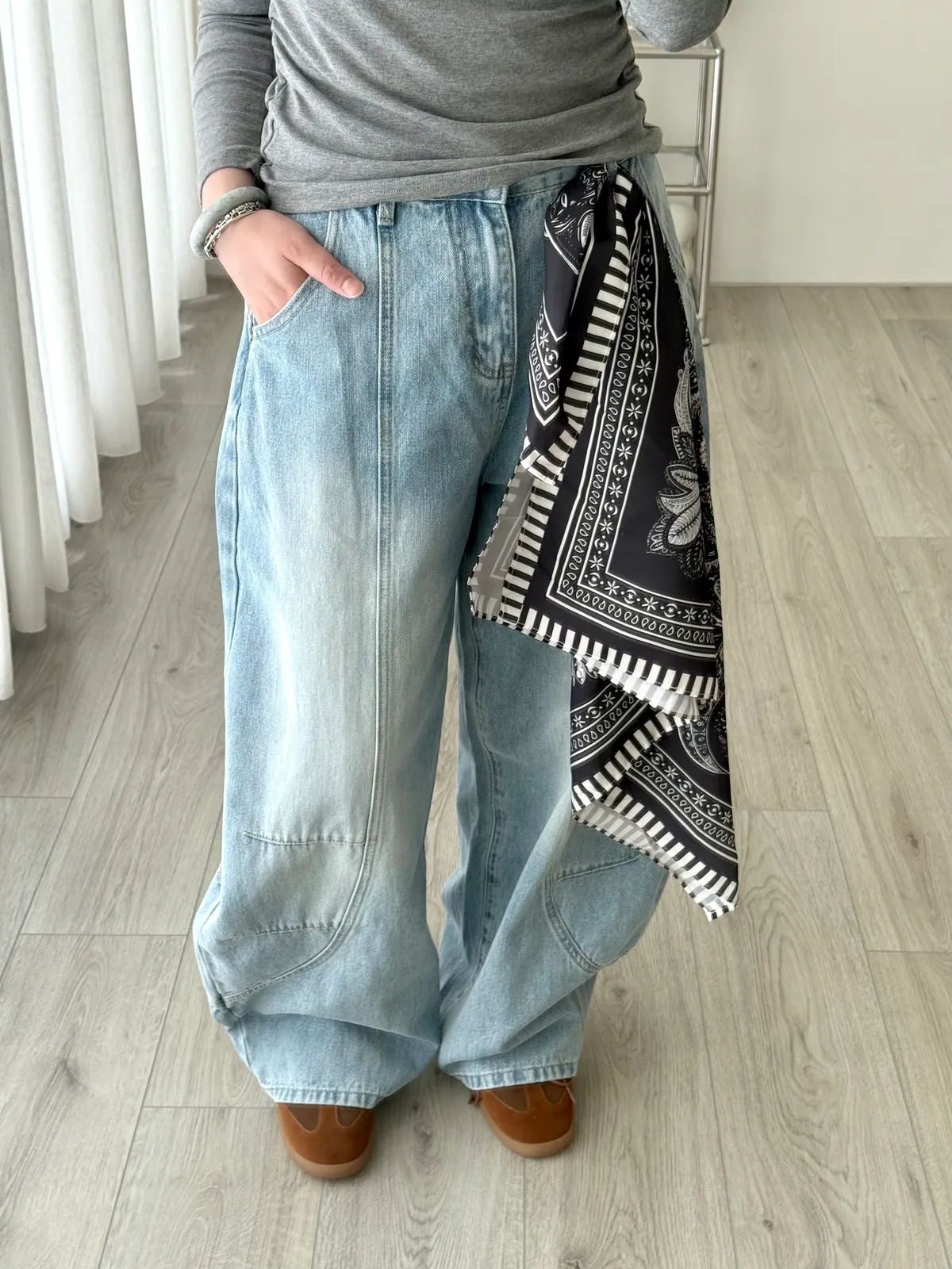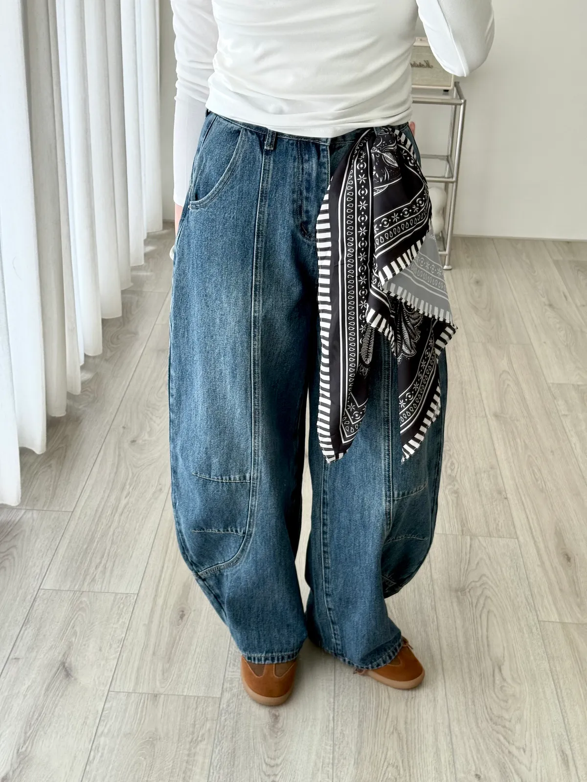 附絲巾彎刀褲