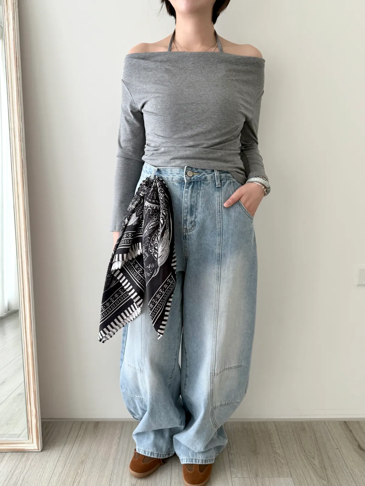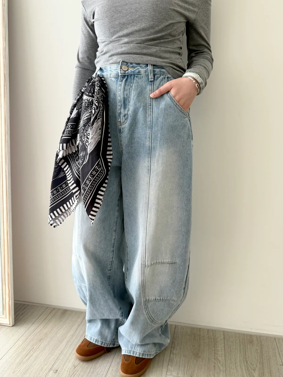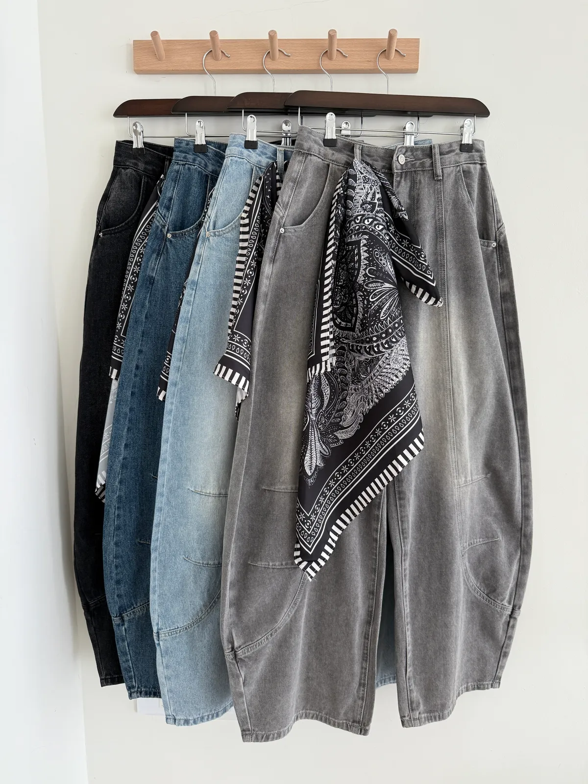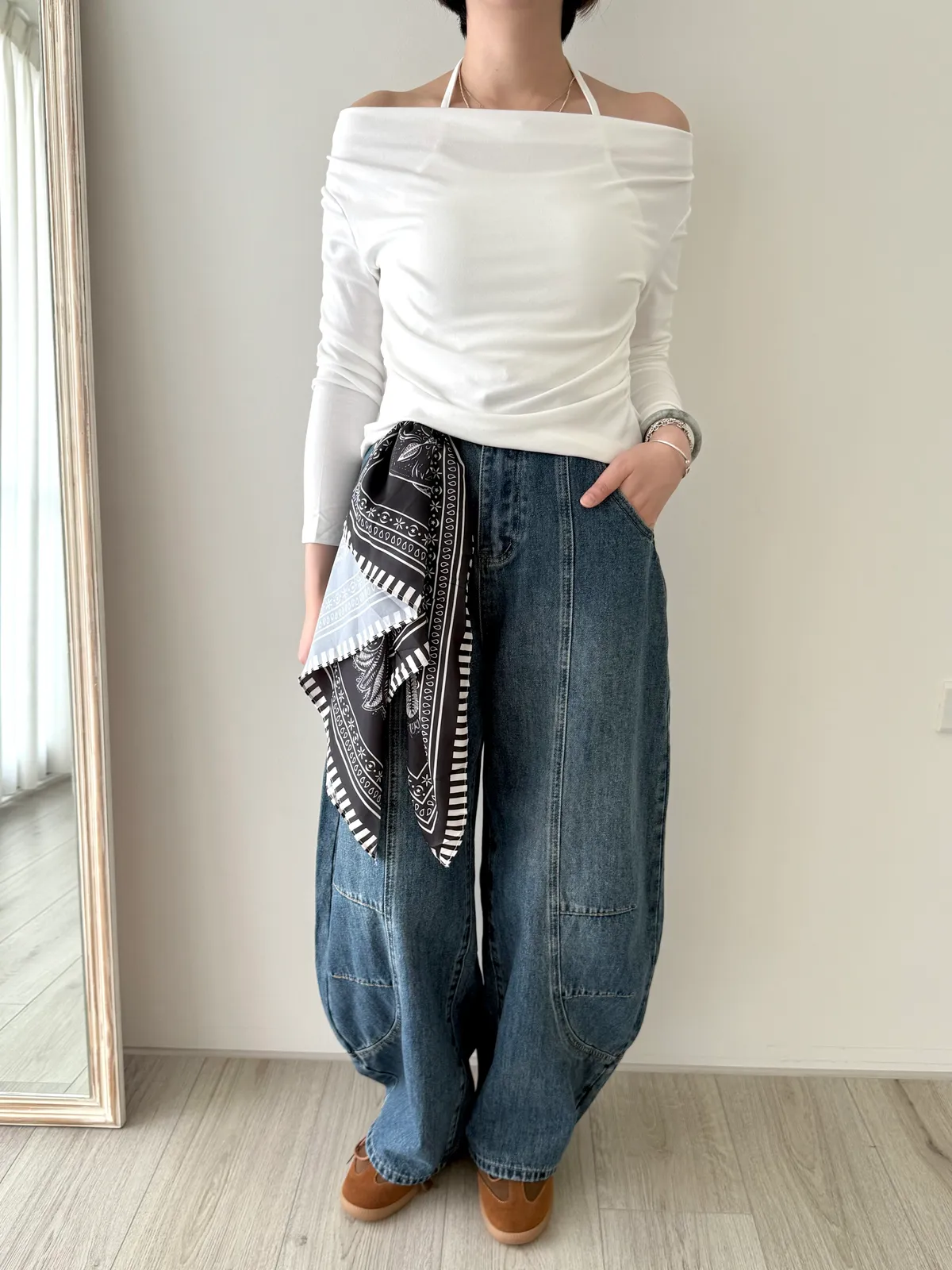 附絲巾彎刀褲