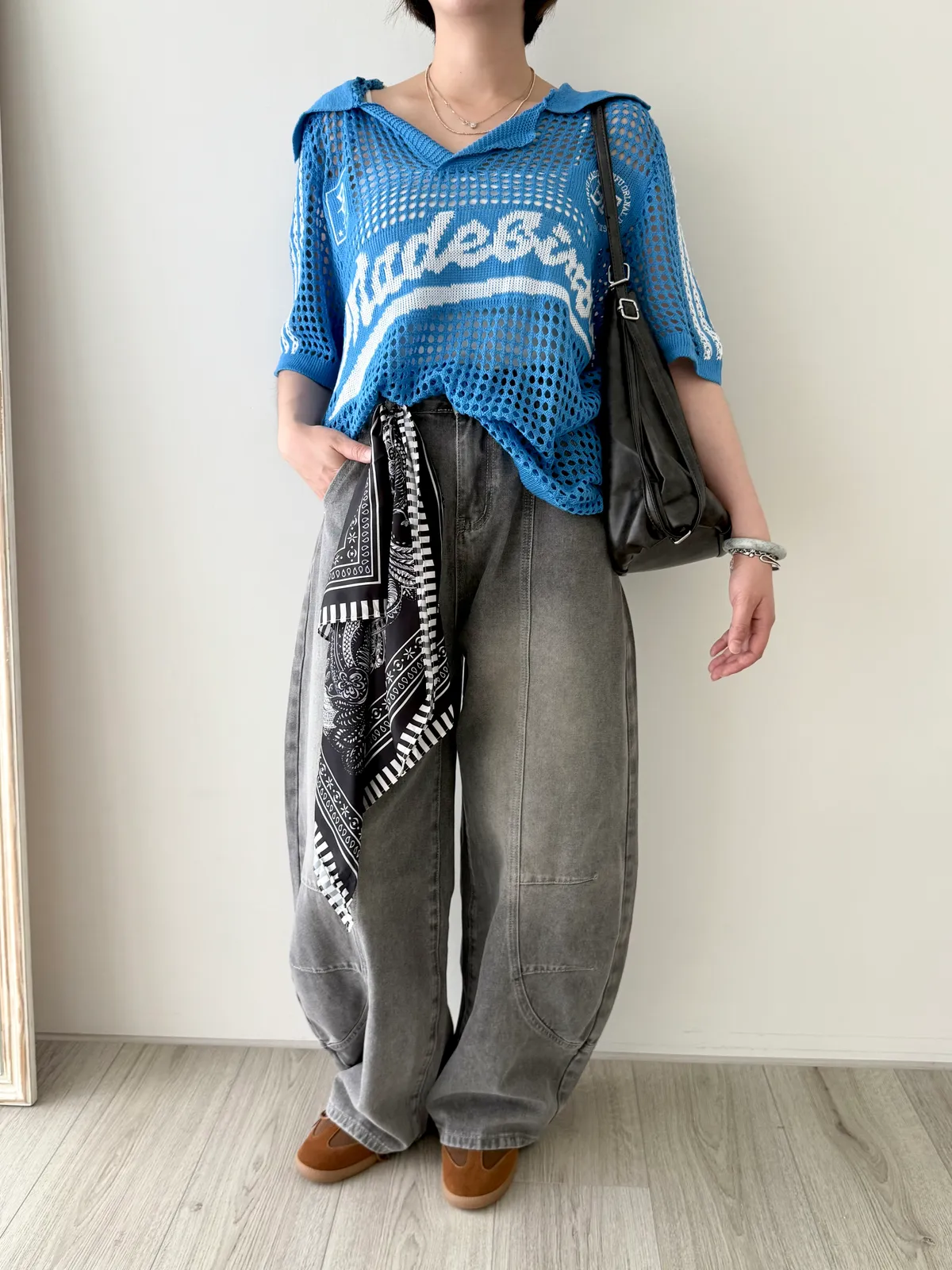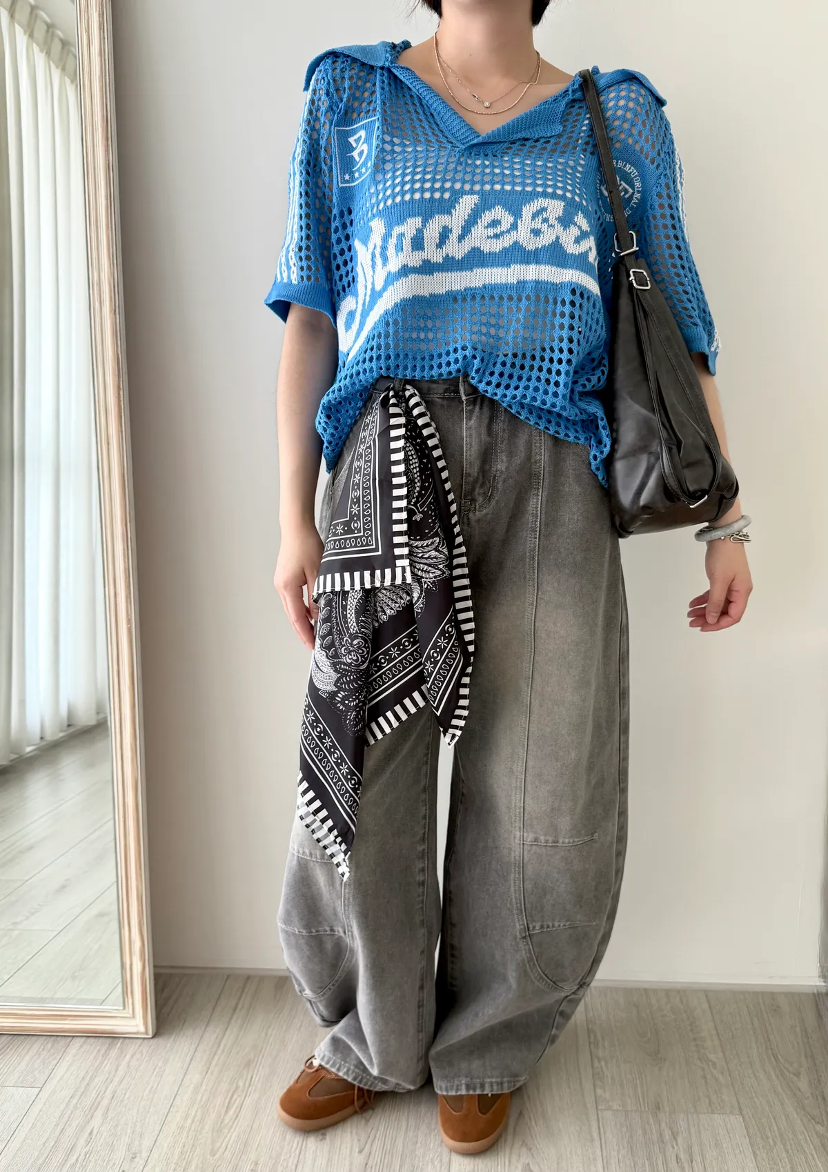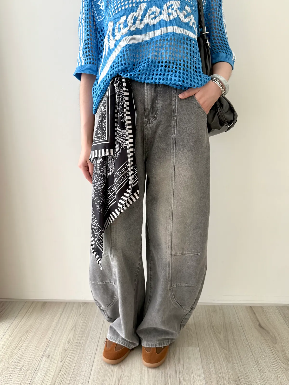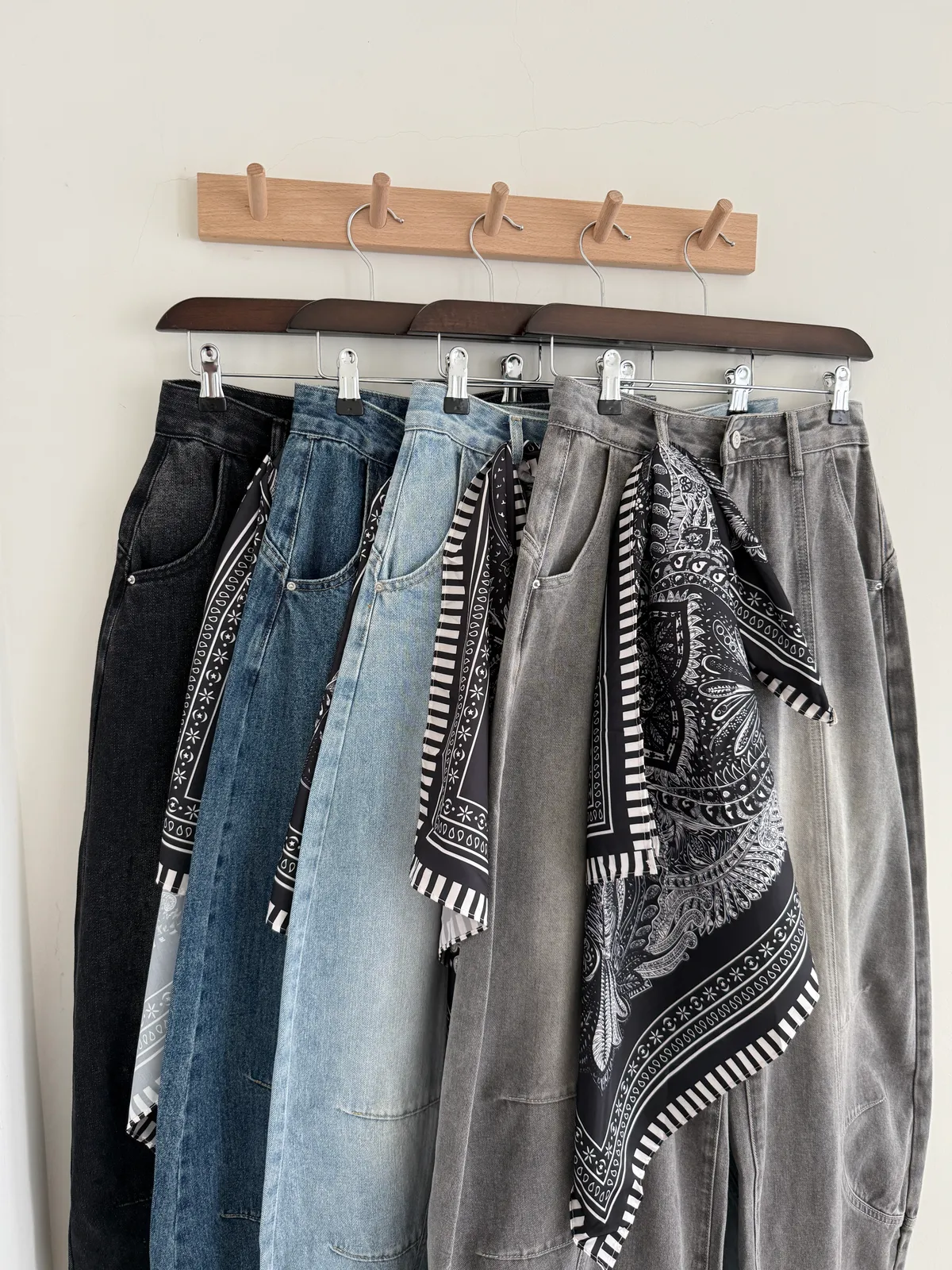 附絲巾彎刀褲