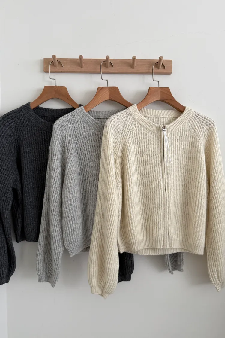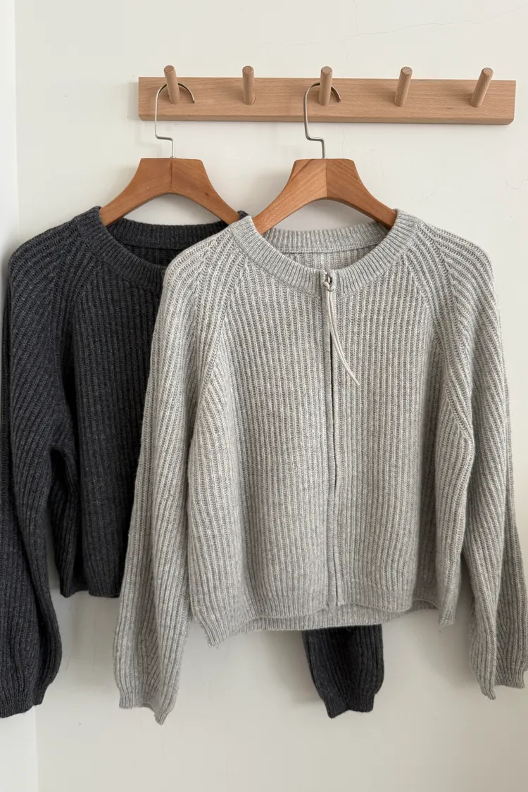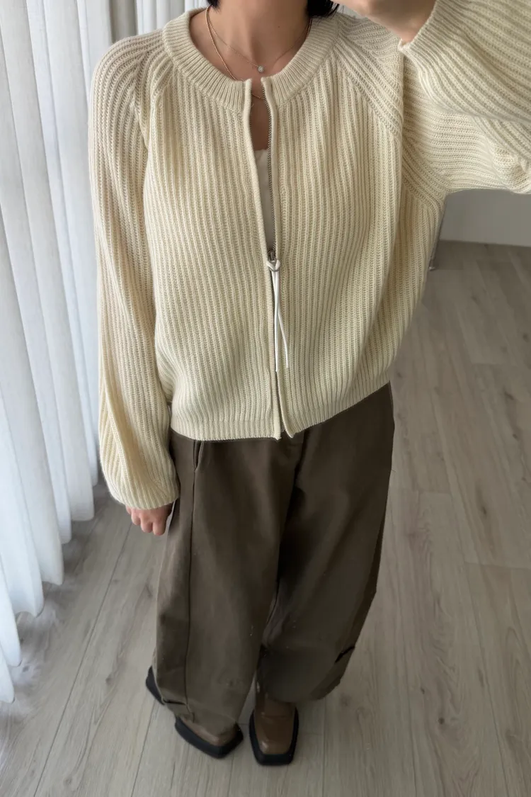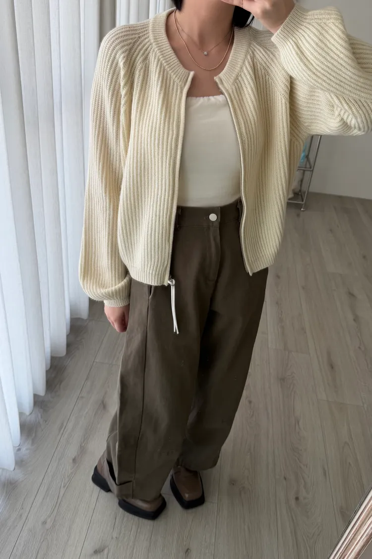 無領拉鏈針織外套