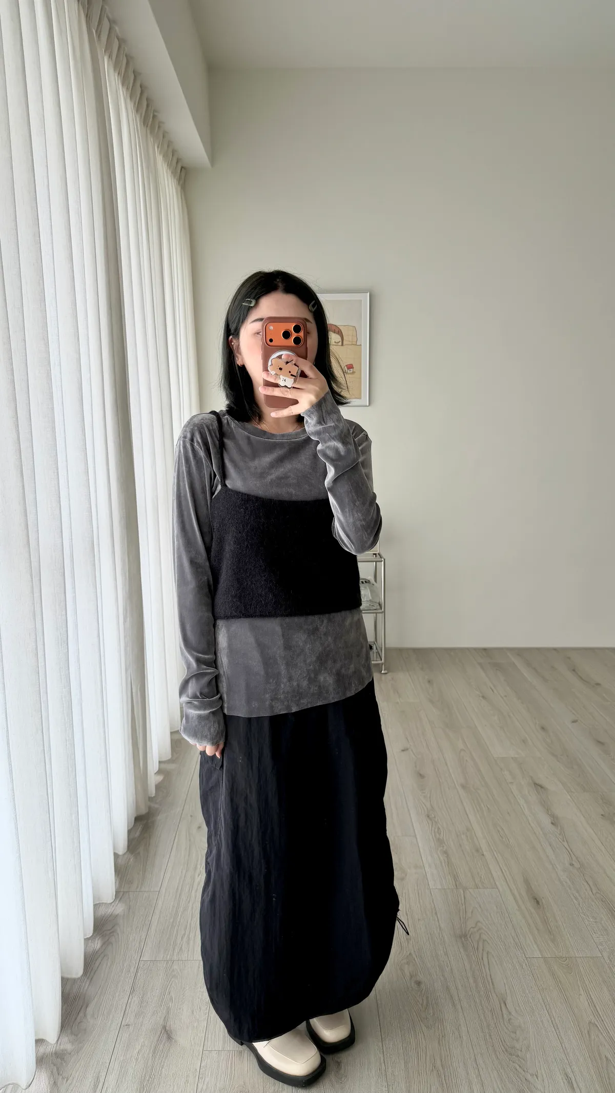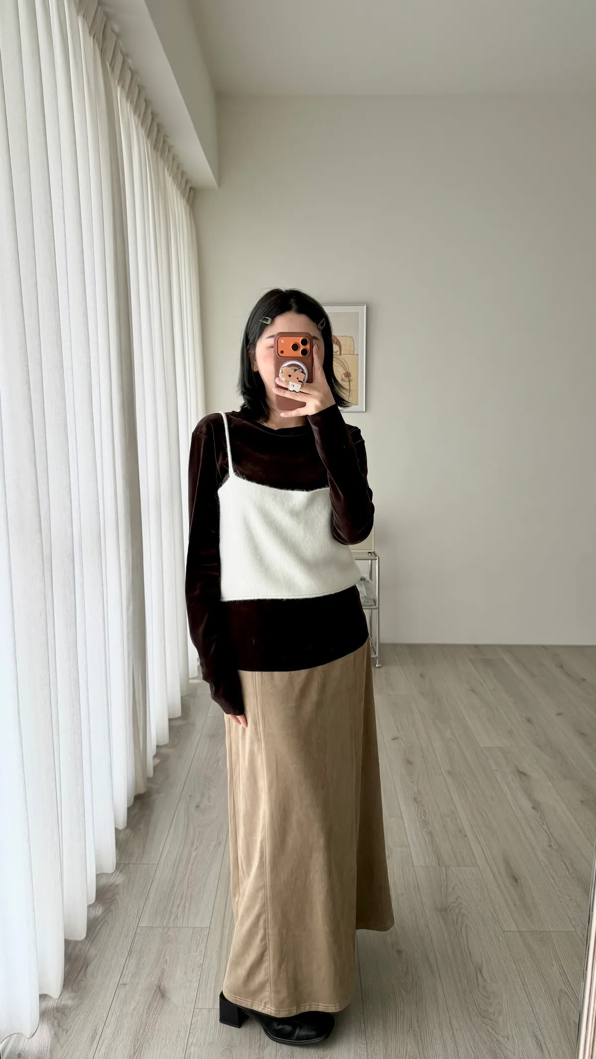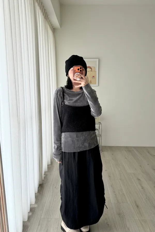 麂皮絨長裙
