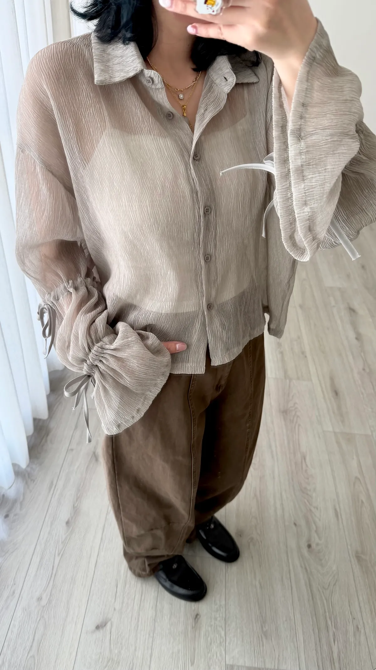 手袖蝴蝶結襯衫