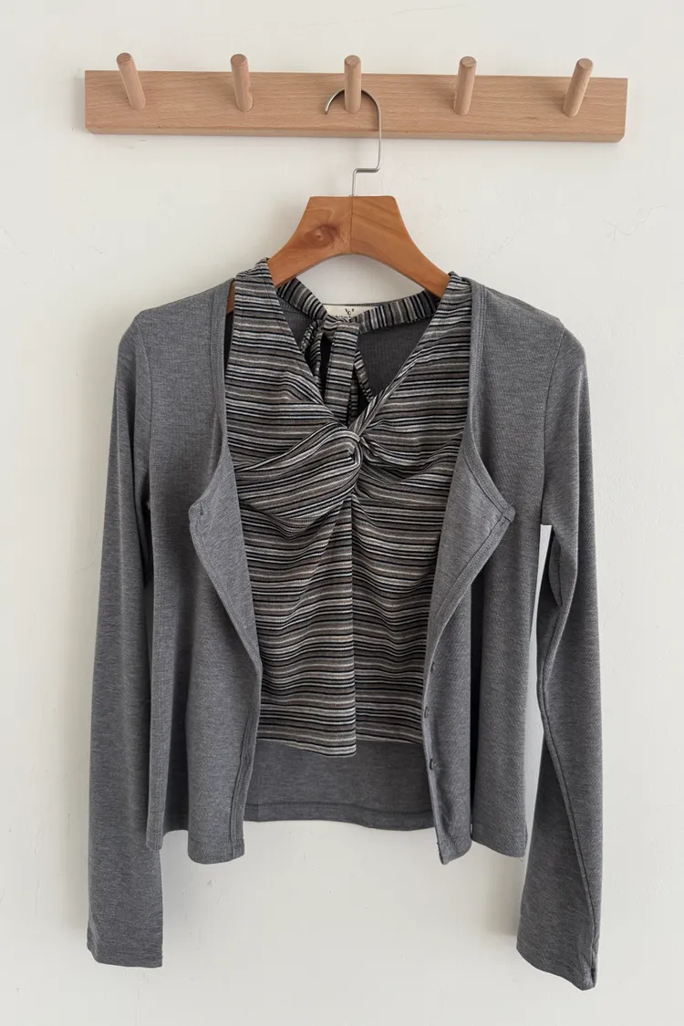 扭結背心+排扣外套set