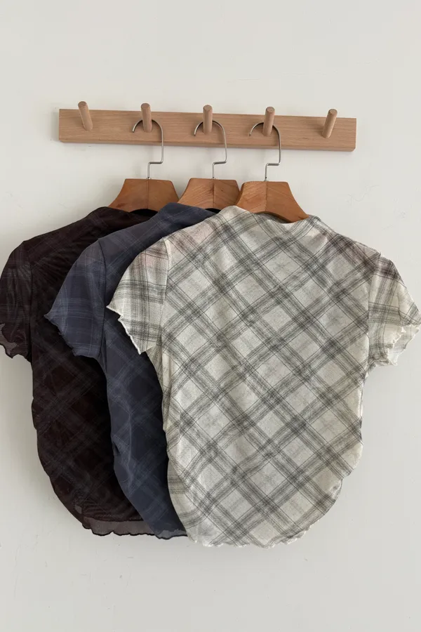 格紋小立領側抓皺上衣